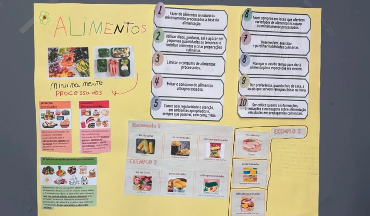 Além das explicações teóricas, as atividades incluíram o preparo de receitas saudáveis de hambúrguer e bebida gaseificada, além da produção de cartazes informativos. A proposta foi mostrar que escolhas alimentares mais saudáveis podem fazer parte da rotina de forma prática, com valorização da comida de verdade e de preparações caseiras.